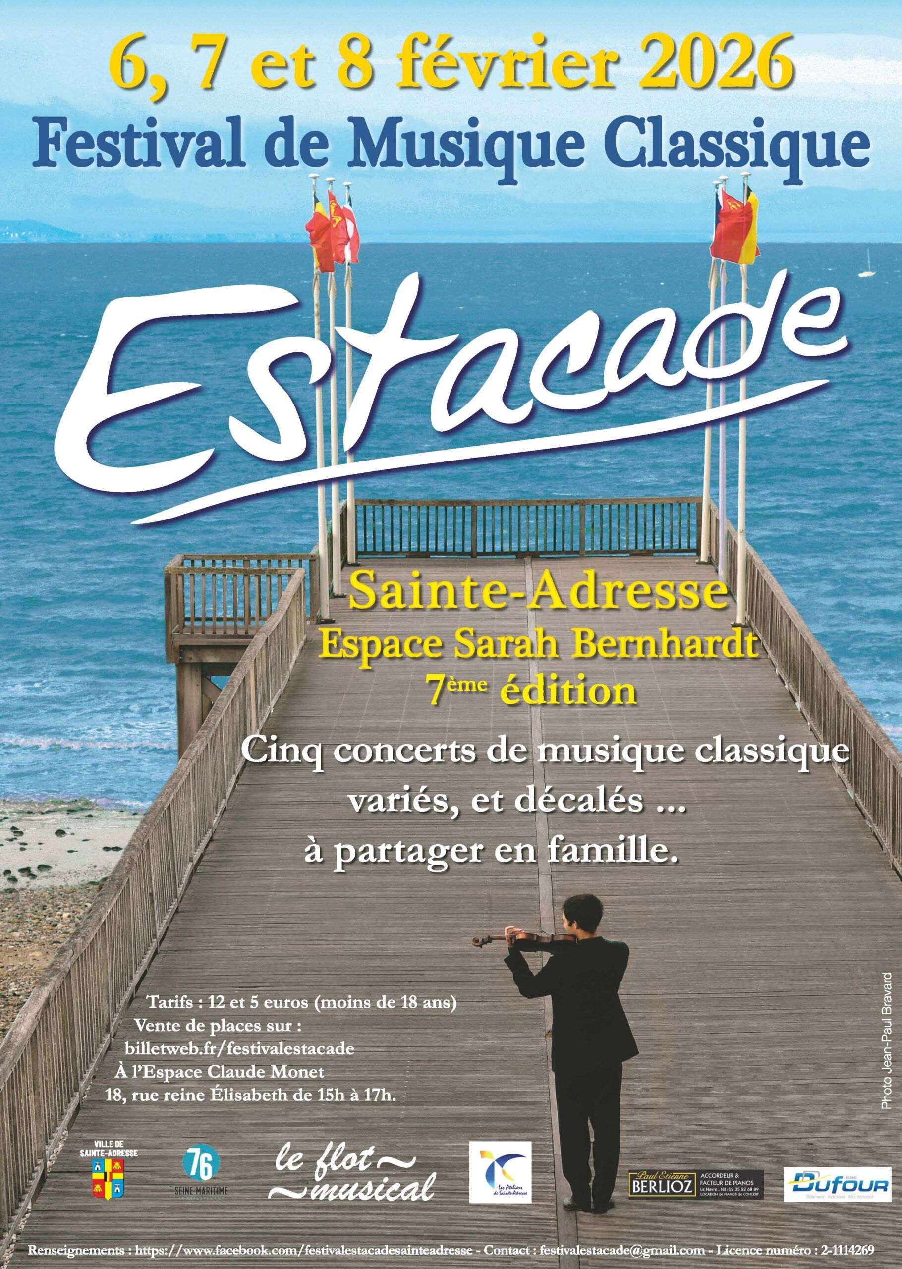 Le Festival Estacade fait son grand retour à Sainte-Adresse ! Pour sa 7ème édition, du vendredi 6 au dimanche 8 février, laissez-vous porter par 5 concerts de musique classique d’exception à l’Espace Culturel Sarah Bernhardt.